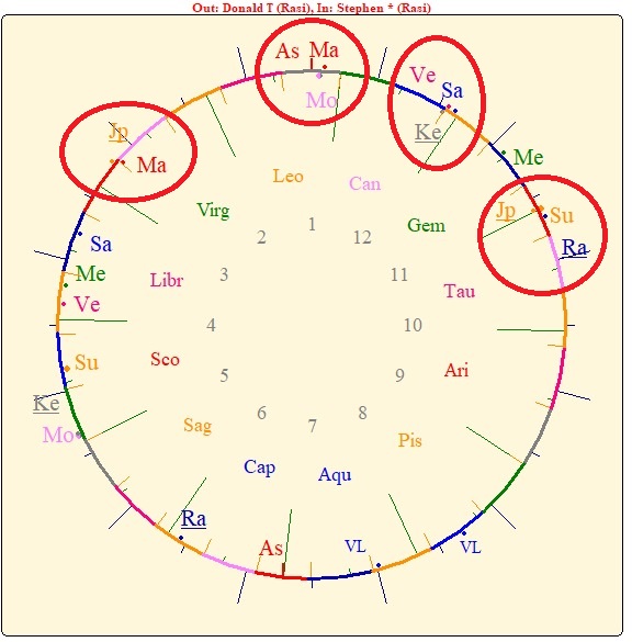 Jaimini astrology by K.N.Rao, Karakas - Astrojyoti: The first lesson which must be learnt in Jaimini astrology is about the karakas. To apply it follow the steps given below: 1. Calculate the degrees of all planets properly, if necessary upto seconds. 2. Tabulate these planets (omitting Rahu and Ketu) from the highest to the lowest degrees, after excluding the signs, in a descending order.