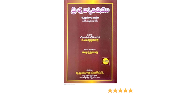 Amazon.in: Telugu - Astrology / New Age & Spirituality: Books Jyothishyam and Vasthu Chitkalu - Telugu (Set of 4 Books) Telugu Edition | by Ganti Suryanarayana | 1 January 2021. No reviews. Paperback ₹200 ₹ 200. Get it by Saturday, December 3. More Buying Choices ₹199 (2 new offers) Fundamental Principles Of Astrology - Telugu (KP Reader 2) Telugu Edition | by Krishnamurti | 1 January 2019. 3.7 out ... Free KP horoscope - Telugu (Krishnamurthy paddhati), kp telugu jatakam ... KP Horoscope - Telugu తెలుగులో కేపి జాతకం కృష్ణమూర్తి పద్ధతి లేదా కేపి పద్ధతి అనే ఈ జాతక విశ్లేషణా పద్ధతిని తమిళనాడుకు చెందిన ప్రముఖ జ్యోతిష్యులు సోత్తిదమన్నన్, జ్యోతిషమార్తాండ బిరుదాంకితులు అయిన శ్రీ కే.ఎస్. కృష్ణమూర్తి గారు 1960 ప్రారంభంలో కనిపెట్టారు. ప్రొఫేసర్ కృష్ణమూర్తి గారు 1908 లో జన్మించారు.